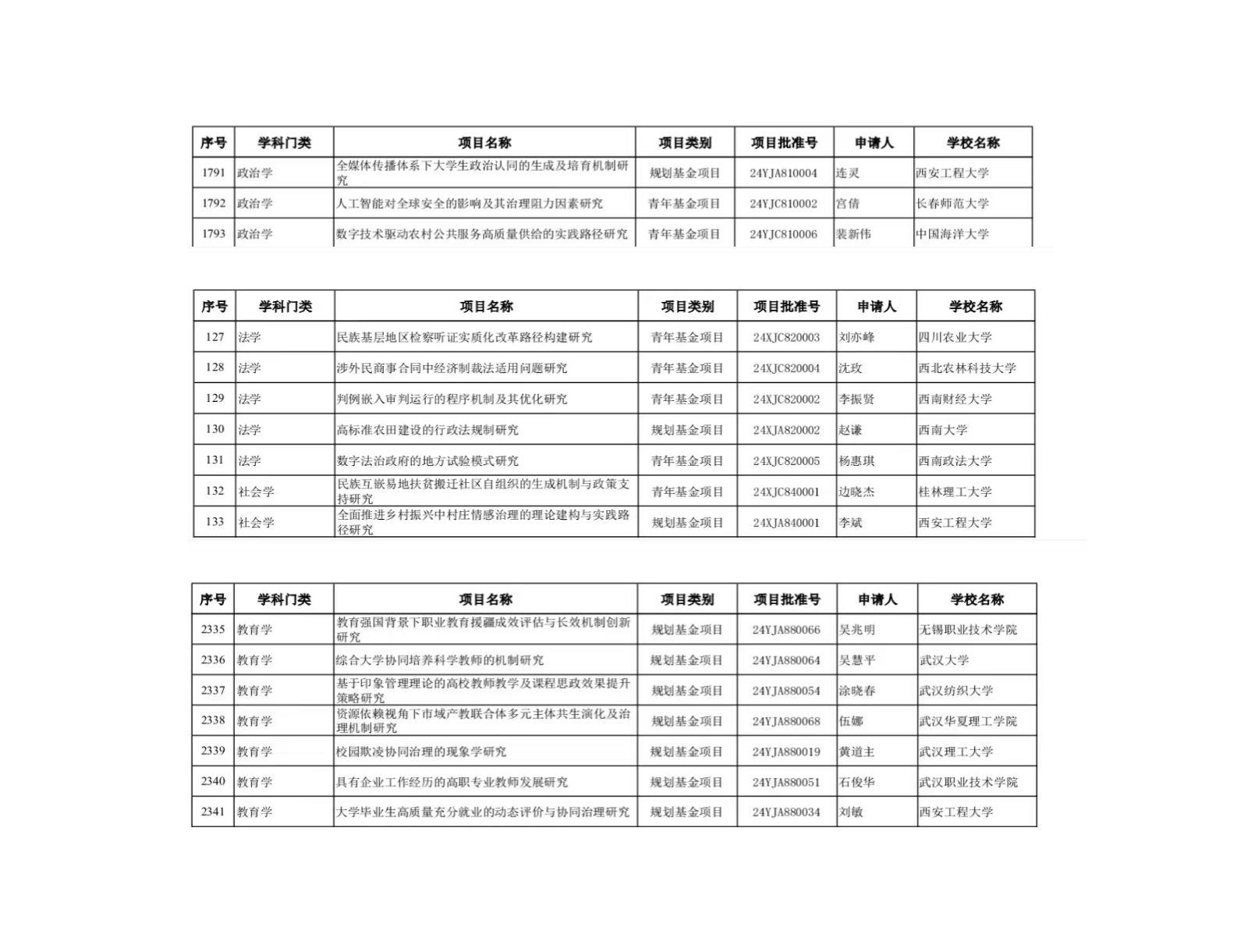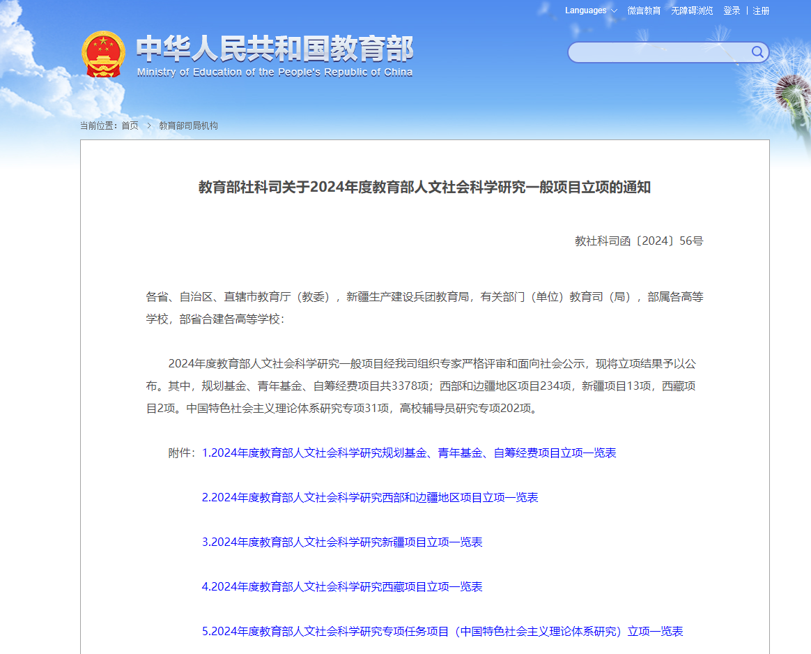 近日,教育部社会科学司公布了2024年度教育部人文社会科学基金项目立项名单,澳门十大信誉好的网站连灵教授主持的“全媒体传播体系下大学生政治认同的生成及培育机制研究”(24YJA810004)、刘敏副教授主持的“大学毕业生高质量充分就业的动态评价与协同治理研究”(24YJA880034)、李斌副教授主持“全面推进乡村振兴中村庄情感治理的理论建构与实践路径研究”(24XJA840001) 获批教育部人文社会科学规划基金项目,学院在该项目获批数量上取得新突破!