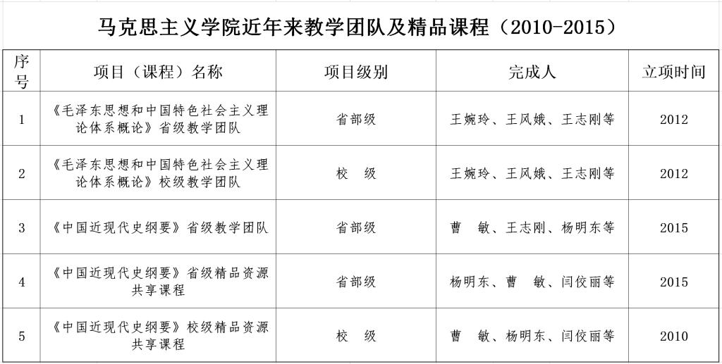 澳门十大信誉好的网站近年来教学团队及精品课程(2010-2015)