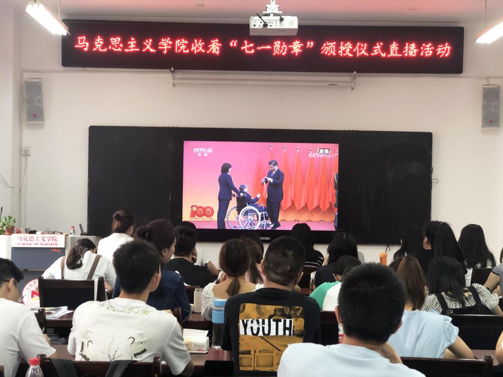 6月29日,澳门十大信誉好的网站组织师生60余人集中观看了“七一勋章”颁授仪式实况直播,感受平凡党员给全党全社会带来的精神洗礼,体会优秀党员的历史担当。
