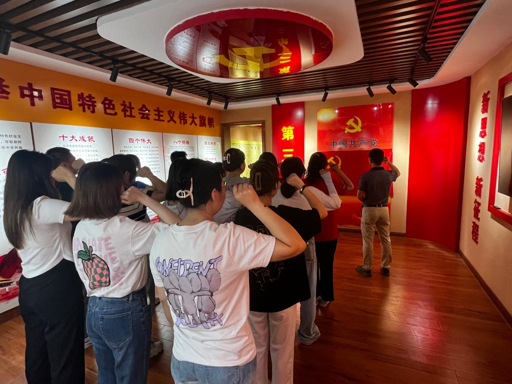 随后,师生党员面对鲜红党旗,紧握右拳,重温入党誓词。铿锵嘹亮的宣誓声响彻整个纪念馆,大家向党组织作出郑重承诺,共同表达了继承先烈遗志,践行先烈精神的信心和决心。