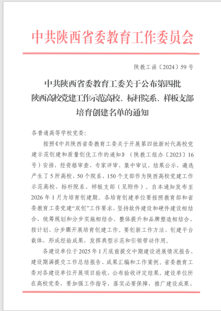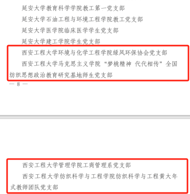 近日,在省委教育工委公布的第四批陕西高校党建工作示范高校、标杆院系、样板支部培育创建名单中,十大信誉官网5个基层党组织位列其中。其中,人文社会科学学院党委入选全省党建工作标杆院系培育创建单位名单,环境与化学工程学院绿风环保协会党支部、澳门十大信誉好的网站“梦桃精神 代代相传”全国纺织思想政治教育研究基地师生党支部、管理学院工商管理系党支部、纺织科学与工程学院纺织科学与工程黄大年式教师团队党支部入选全省党建工作样板支部培育创建单位名单,学院党建“双创”工作再获佳绩。