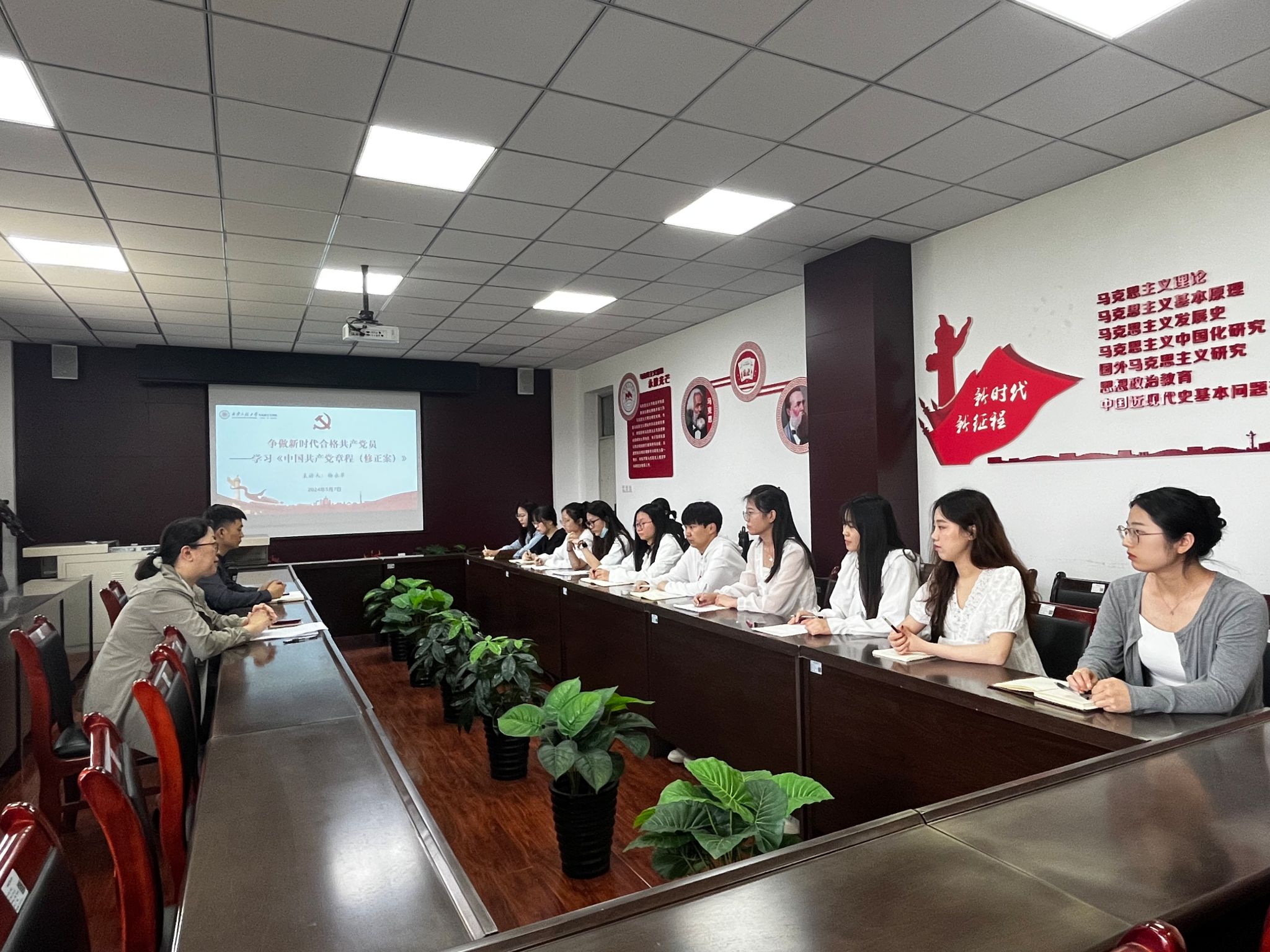 杨永革以“争做新时代合格共产党员——学习《中国共产党章程(修正案)》”为题讲授了党课。分别从“牢固树立共产主义信念、全心全意为人民服务、永远做劳动人民的普通一员和共产党员的八项义务、八项权利”等方面展开了深入的解读和阐释。她强调,作为马克思主义理论专业的研究生,要认真学习习近平新时代中国特色社会主义思想,学习党的二十大精神以及党的二十大通过的《中国共产党章程(修正案)》,学习党的路线、方针、政策和决议,学习党的基本知识和党的历史,提高党性觉悟。要切实增强“四个意识”,坚定“四个自信”,做到“两个维护”。要自觉遵守党的纪律,严守政治纪律和政治规矩。要增强宗旨观念,不断提高为人民服务的本领,勇于担当作为,在今后的学习生活和工作中,充分发挥先锋模范作用。