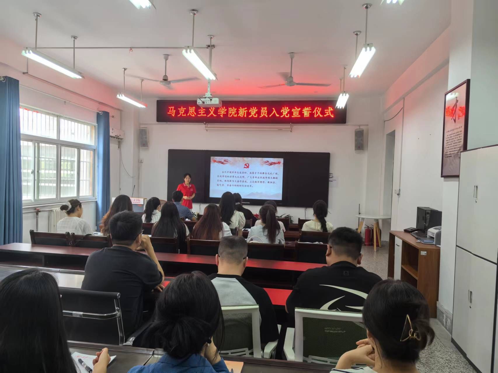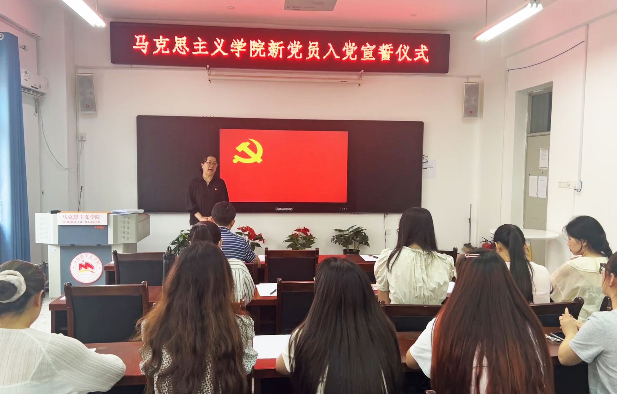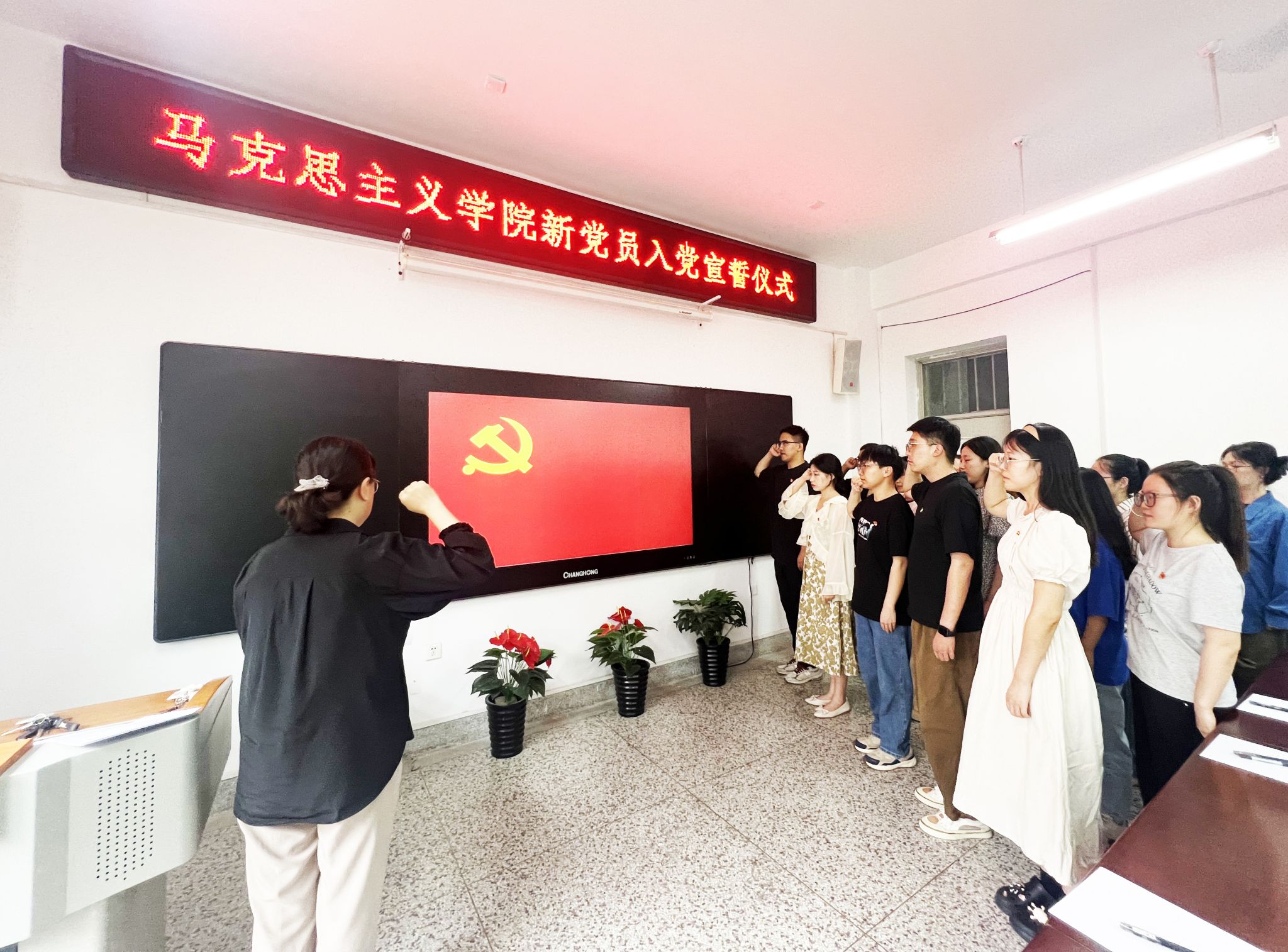 最后,杨永革总结讲话。她代表学院党委对新党员表示祝贺,希望大家能够铭记这一神圣而难忘的时刻,践行在党旗下的郑重承诺,自觉接受党组织的教育、管理和监督,不忘初心,牢记使命,严格要求自己,做到学业努力优秀、工作认真负责、勇于担当作为,充分发挥党员的先锋模范作用,为新时代强国建设贡献青春力量。(撰稿:郭媛媛审稿:杨永革)