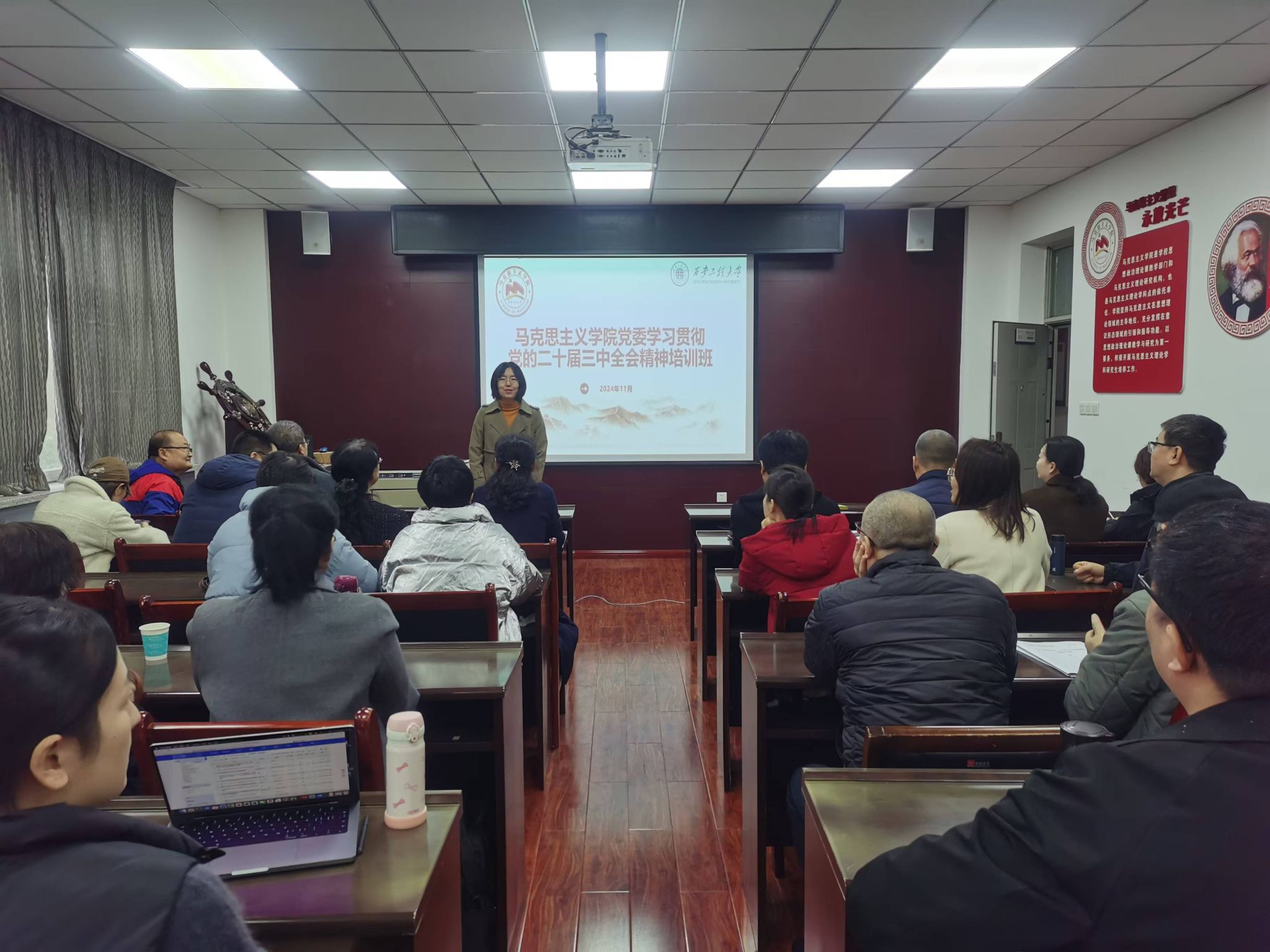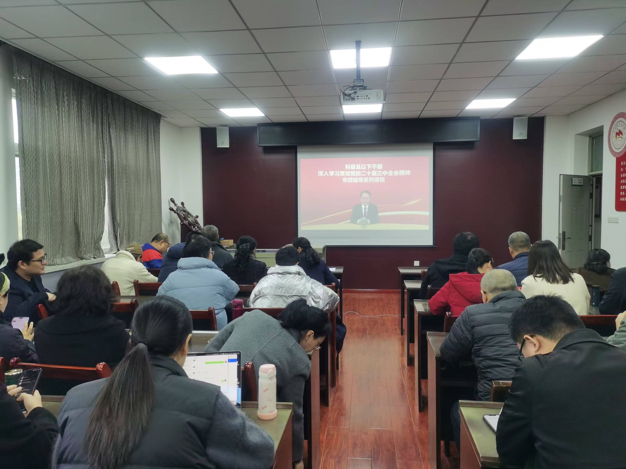 11月18日,澳门十大信誉好的网站学习贯彻党的二十届三中全会精神培训班在人文楼203会议室开班,学院领导班子成员、学院科级及以下干部及全体教师党员参加培训班开班仪式并进行培训。活动由学院党委副书记(主持工作)傅博娜主持。