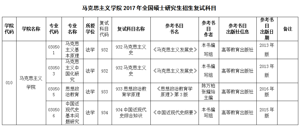澳门十大信誉好的网站2017年硕士研究生招生复试科目及参考书目