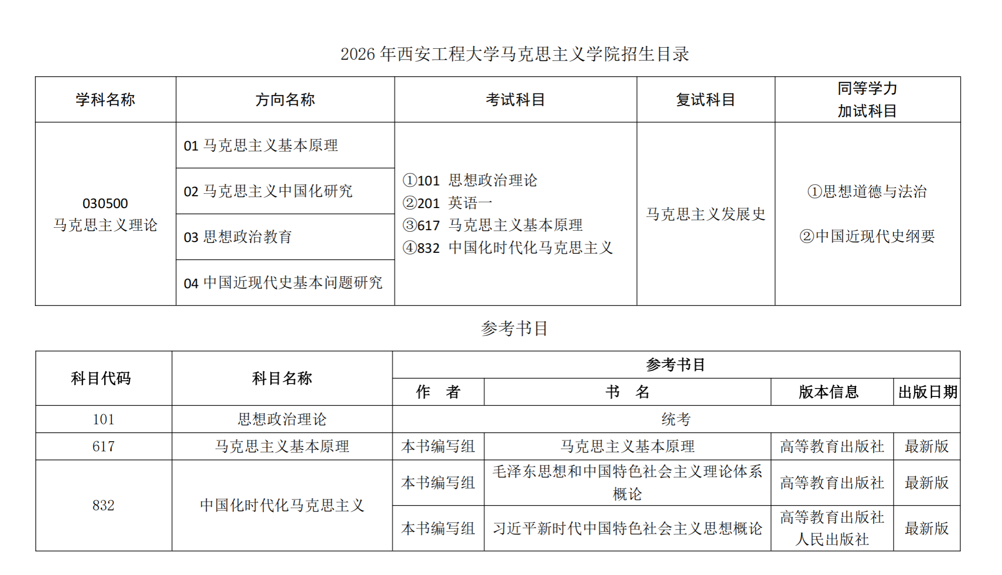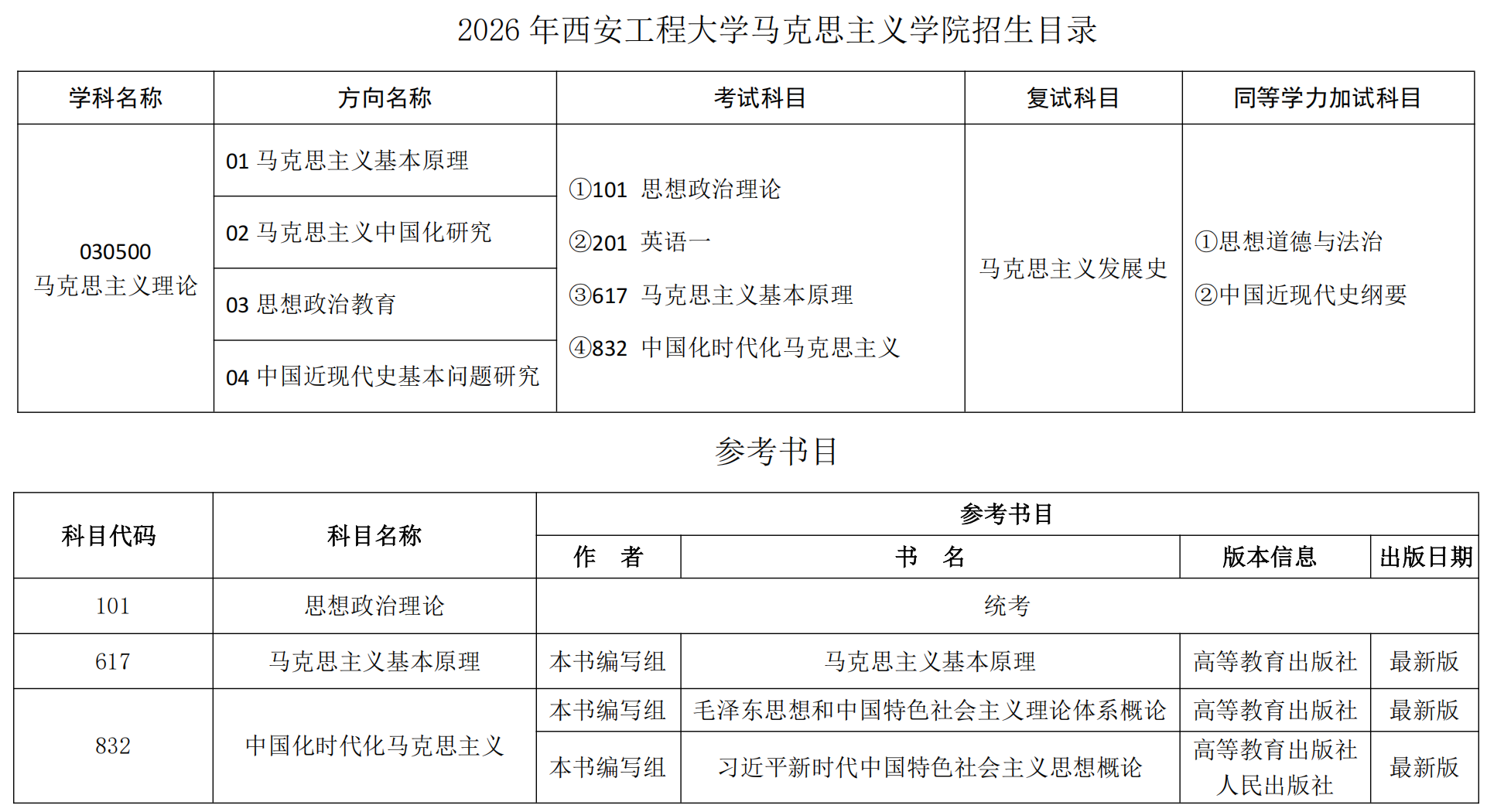 学院按马克思主义理论一级学科硕士点在马克思主义基本原理、思想政治教育、马克思主义中国化研究、中国近现代史基本问题研究等4个学科方向进行研究生培养。学位点现有一级学科带头人1人,二级学科带头人4人。硕士生导师32人,其中教授9名,副教授20名。近三年,学位点教师作为主持人获批、完成国家社科基金项目4项,教育部人文社科基金项目6项,陕西省社科基金项目等其他省部级项目31项;发表论文100余篇,其中Nature子刊《人文与社会科学通讯》1篇、CSSCI来源期刊20余篇;在《人民日报》《光明日报》等发表理论文章20余篇;出版学术专著7部;多项科研成果荣获陕西省哲学社会科学优秀成果奖一等奖、陕西省思想政治工作优秀研究成果奖、陕西高校人文社会科学研究优秀成果奖等,为学位点人才培养奠定了良好的基础。学位点发挥学校特色优势,联合纺织服装行业相关部门申报获批了“梦桃精神 代代相传”全国纺织思想政治教育研究基地、纺织劳模工匠“大思政课”研究教育基地,对“梦桃精神”进行保护性挖掘、系统性研究,围绕“梦桃精神”的历史维度、逻辑维度、时代维度和思想政治教育维度开展学术研究,推动“梦桃精神”走进学生,走向社会,绽放时代光芒。