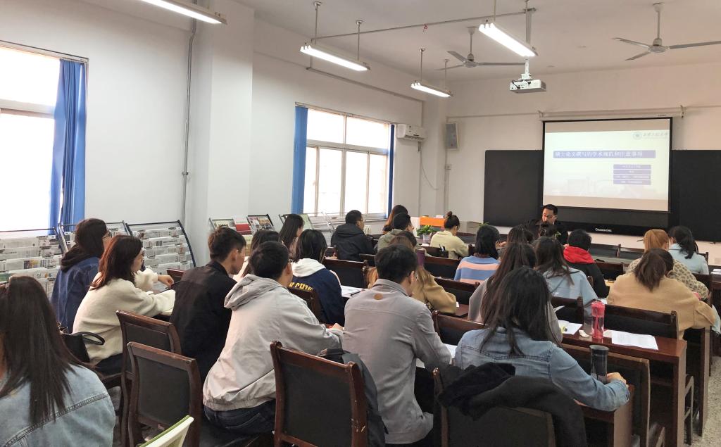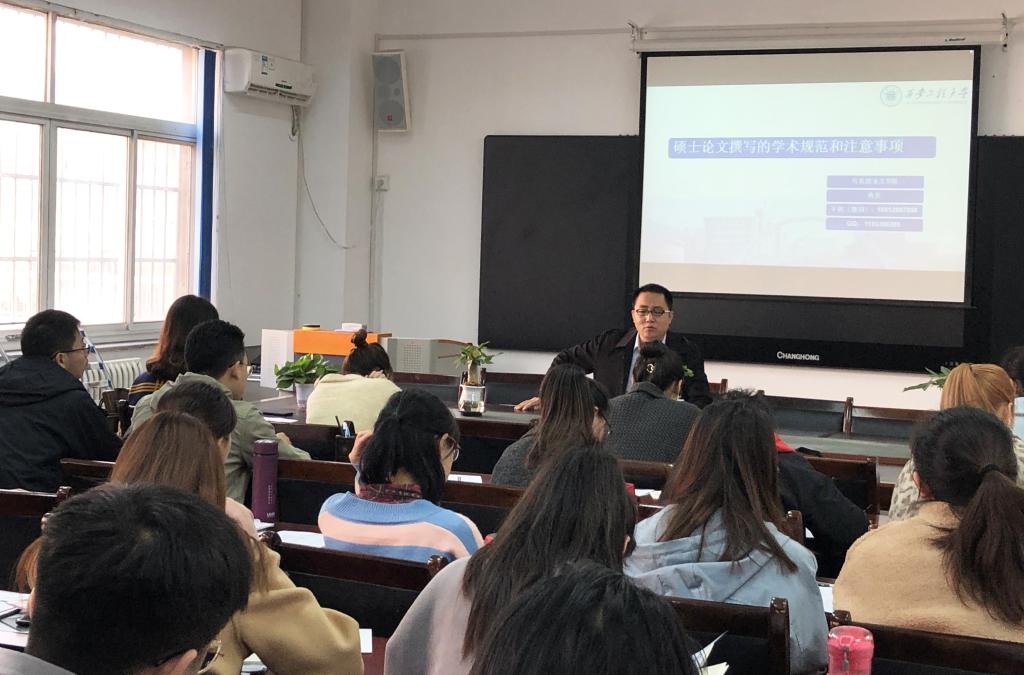 在历时一个多小时的讲座中,冉老师旁征博引、娓娓道来,用生动形象的PPT,向同学们讲解了文献阅读与论文写作的技巧。讲座从“何谓“学术””、“何谓硕士学位论文”、“硕士论文撰写的学术规范和注意事项”三个方面展开。冉彦老师结合自身的经历与大家分享了如何进行选刊与投稿,介绍了“学术”在中华语境中的流变、在西方语境中的流变以及在东西方达成共识三个方面进行说明,并着重向学生对比分析了硕士学位论文和本科学位论文的区别。整个讲座中,冉老师语言诙谐幽默、举例得当,充分调动了学生们的学习积极性,同学们认真听讲,积极提问,收获颇多。