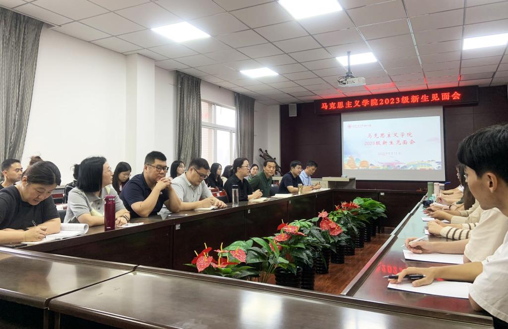 9月11日上午,马克思主义学院召开2023级研究生新生入学教育大会。学院党委书记杨永革、院长王志刚、副院长郭松、导师代表刘敏、聂迅,研究生秘书李益鹏、刘佳及2023级硕士研究生全体新生参加了会议。会议由学院学工办主任孙建荣主持。