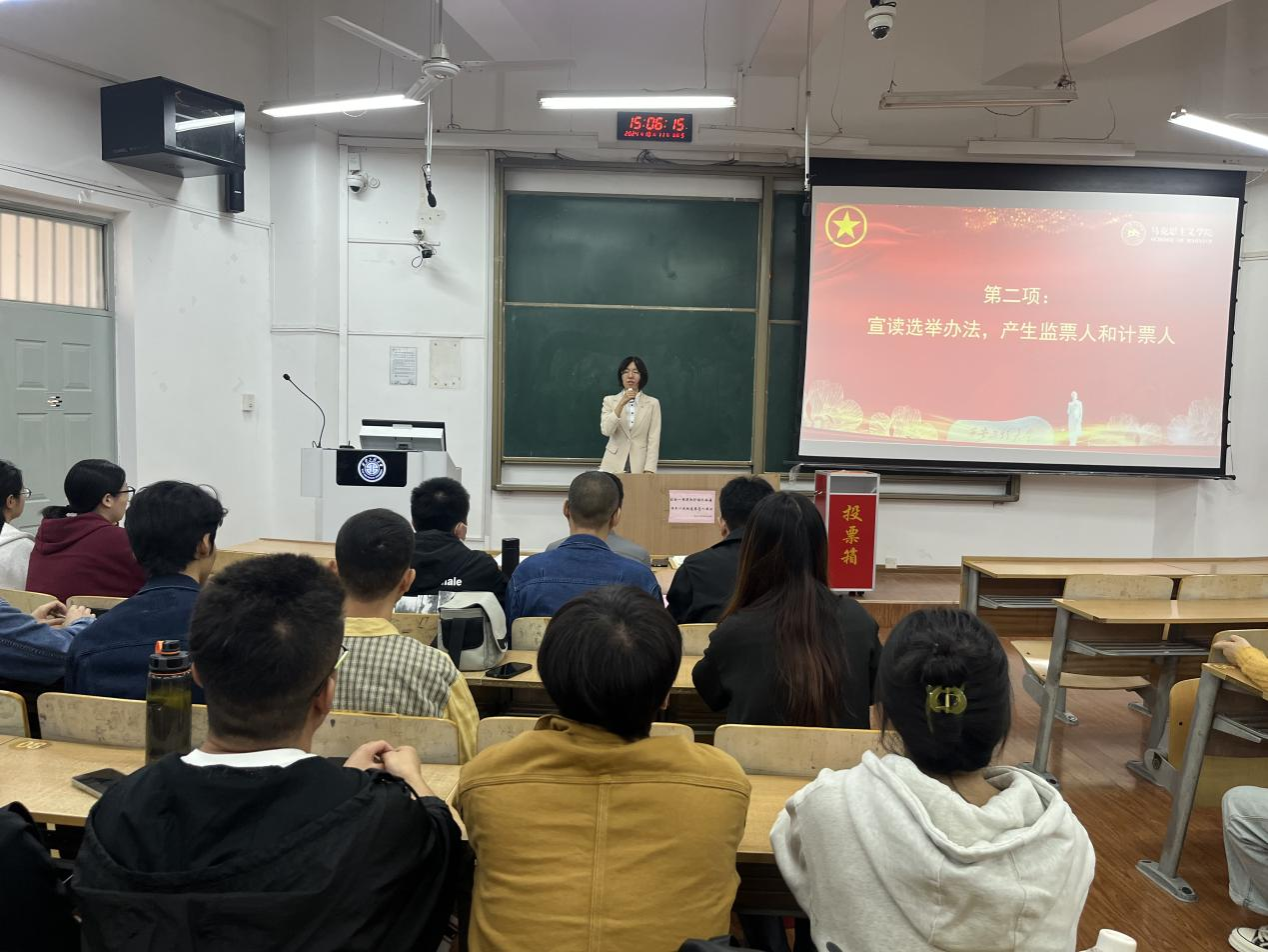 10月11日,澳门十大信誉好的网站在临潼校区B-235教室召开共青团澳门十大信誉好的网站第四次代表大会暨澳门十大信誉好的网站第六次学生代表大会和第四次研究生代表大会澳门十大信誉好的网站代表选举大会。学院党委副书记(主持工作)傅博娜、习近平新时代中国特色社会主义思想概论教研室李斌副教授和学院全体研究生参加了会议。会议由学院学工办主任梁育主持。