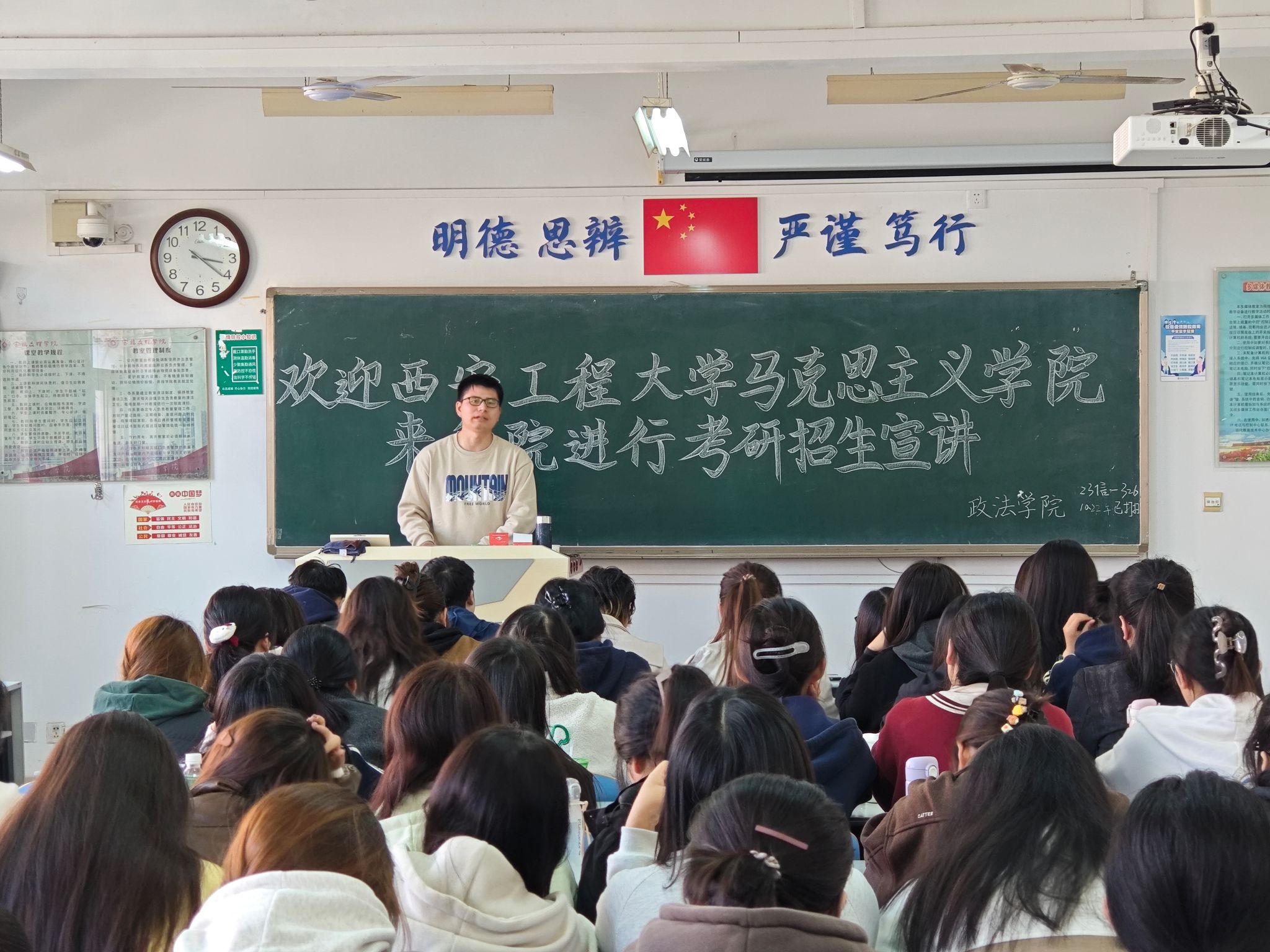 为进一步提高研究生招生工作质量,加强院校交流合作,10月22日,澳门十大信誉好的网站党委副书记(主持工作)傅博娜与学生工作办公室主任梁育一行赴宝鸡文理学院开展研究生招生宣传并做招生宣讲。宝鸡文理学院政法学院党委副书记、副院长赵阿妮老师及学院思想政治教育专业百余名本科生参加宣讲活动。