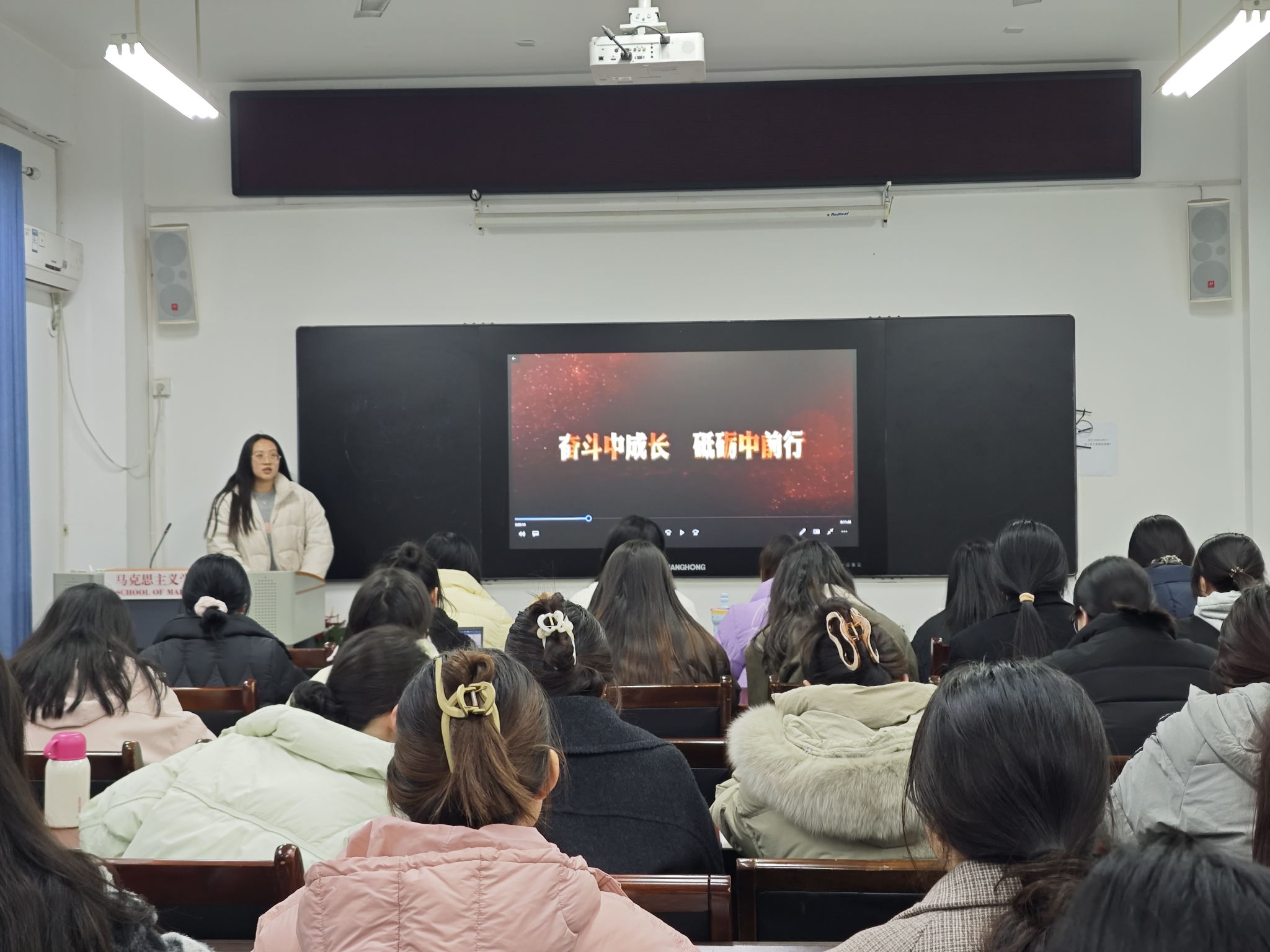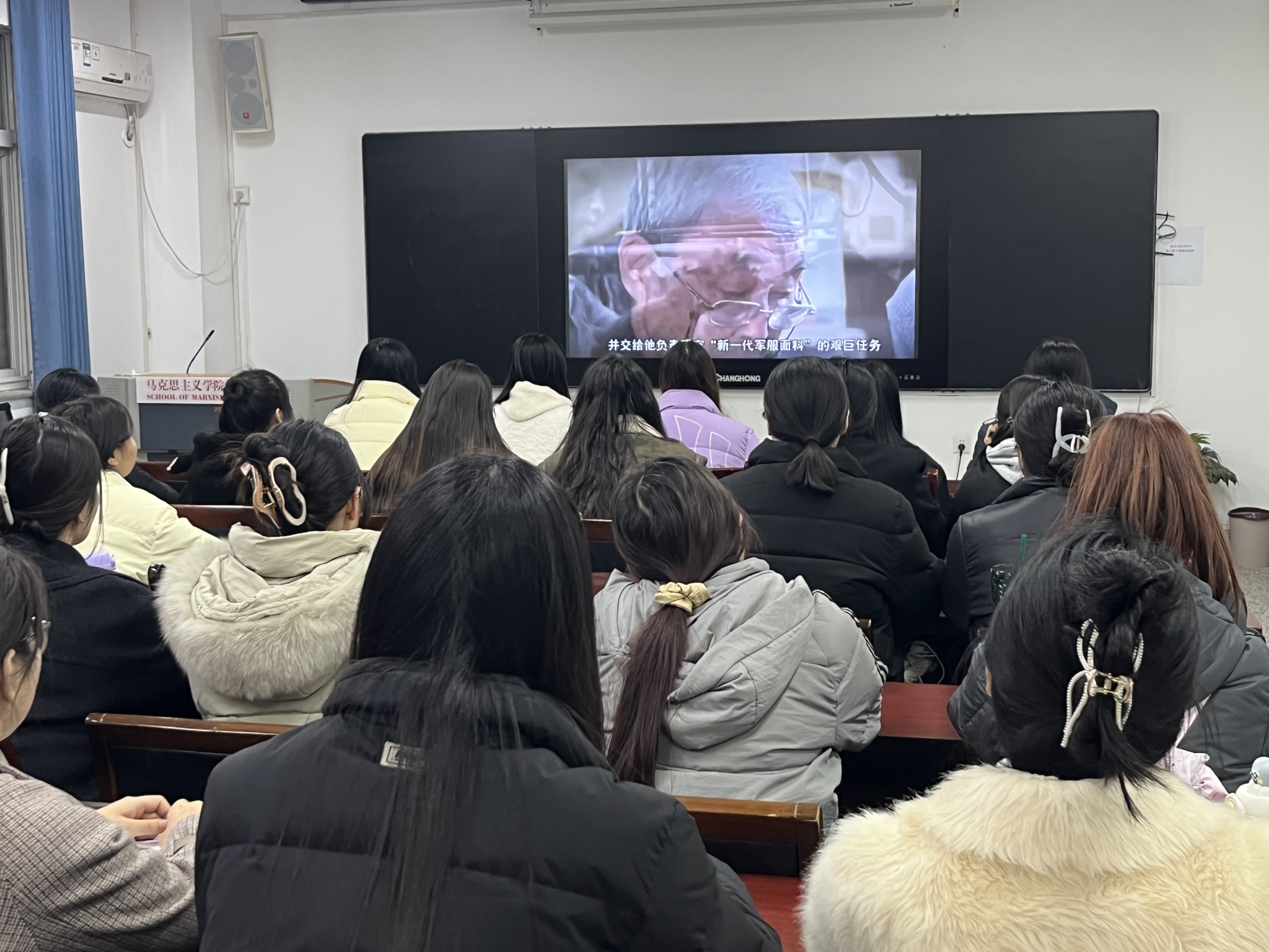 参会全体研究生首先集体学习了《“陕”耀光芒—在陕两院院士风华录》中“姚穆院士——衣被天下的纺织人”的先进事迹材料,随后共同观看了姚穆院士专题纪录片。这些详实珍贵的文献资料和历史影像和访谈资料,生动展现了姚穆院士胸怀家国、纺织报国的伟大抱负,躬耕教坛、培育桃李的师者情怀,严谨治学、勇攀科学高峰的探索精神,以及扎根西北、默默奉献的高尚品格。学习现场气氛庄重而热烈,同学们被姚穆院士的事迹深深打动,沉浸在对他卓越贡献的敬仰与追思之中。