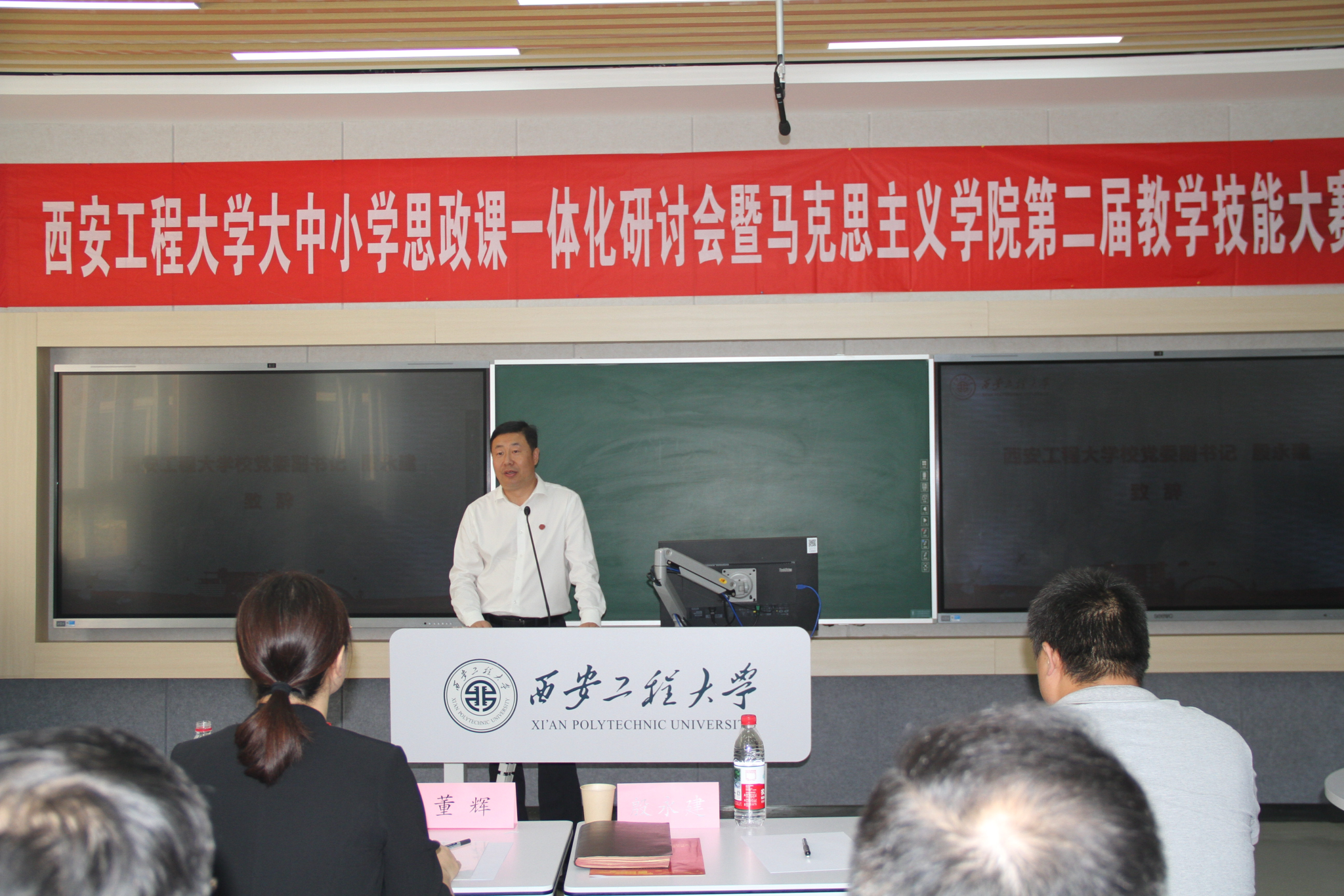 殷永建首先代表学校向莅临会议的各位专家表示欢迎,他指出,思政课是落实立德树人根本任务的关键课程,是培育学生“扣好人生第一粒扣子”的核心载体,只有打破学段壁垒、贯通教育链条,才能让思政课真正“入脑入心”,实现“培根铸魂”的育人目标,他从以“目标同向”锚定育人主线、以“内容贯通”构建育人链条、以“资源共享”凝聚育人合力三方面对加强大中小学思政课一体化建设提出了要求,希望以赛为媒,进一步深化跨校际合作,让“思政课一体化”从“理念”变成“路径”,从“共识”变成“实效”。
