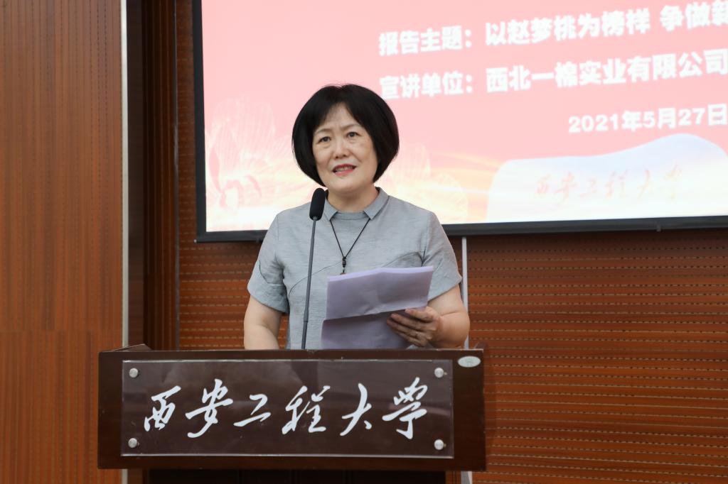 5月27日,为纪念“赵梦桃小组”命名58周年,十大信誉官网弘扬“梦桃精神”争做新时代最美奋斗者报告会在临潼校区图书馆二楼报告厅举办。澳门十大信誉好的网站特邀请了西北一棉实业有限公司“梦桃事迹”宣讲团来十大信誉官网宣讲梦桃事迹、传承“梦桃精神”。校党委副书记朱君强、“梦桃精神 代代相传”全国纺织思想政治教育研究基地成员、澳门十大信誉好的网站师生代表,纺织学院、服装学院、机电学院、电信学院学生代表300余人参加了报告会,报告会由澳门十大信誉好的网站党总支书记杨永革主持。