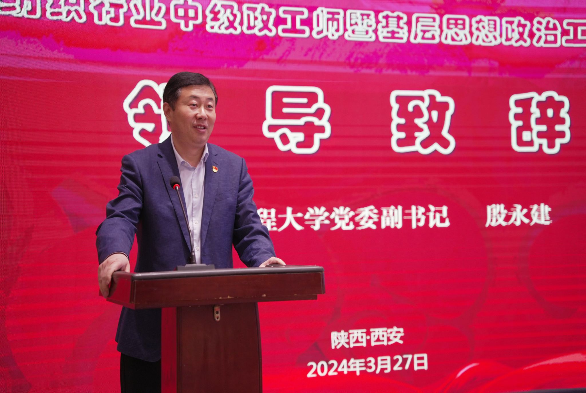 3月27日上午,培训班开班仪式在庄严而热烈的气氛中拉开帷幕。校党委副书记殷永建出席开班仪式并致辞,他强调,思想政治工作是党的优良传统、鲜明特色和政治优势。当今中国,正处于中华民族伟大复兴的战略全局和世界百年未有之大变局的时代背景,如何学习研究贯彻好习近平总书记重要讲话精神,传承弘扬好新时代“梦桃精神”,深度挖掘其在产业职工队伍建设中的宝贵价值,推进陕西省乃至全国产业职工队伍建设,激发产业职工创新创造、追赶超越的热情和力量,为产业发展注入精神动力和智力支撑,让诚实劳动、勤勉工作蔚然成风,是新时代给党建和思想政治工作者提出的新课题,希望广大学员珍惜学习机会,加强交流,学有所获、学有所用,为陕西省纺织行业发展贡献智慧和力量。