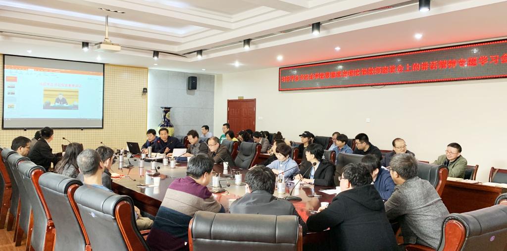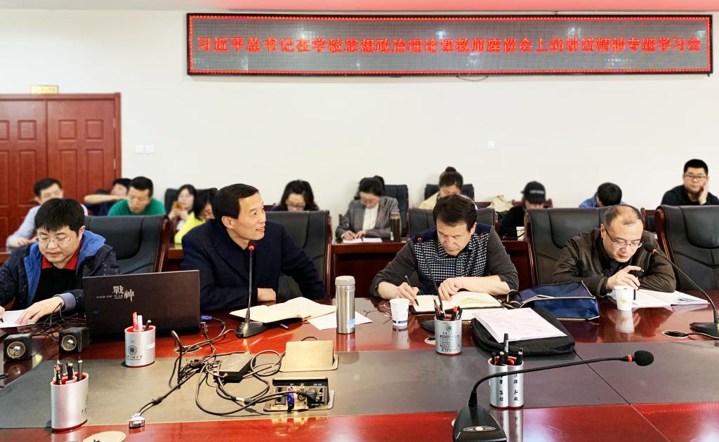 3月20日下午,澳门十大信誉好的网站组织全体教职工在金花校区第三会议室举办了“习近平总书记在学校思想政治理论课教师座谈会上重要讲话”专题学习会。会议由澳门十大信誉好的网站院长王志刚主持。