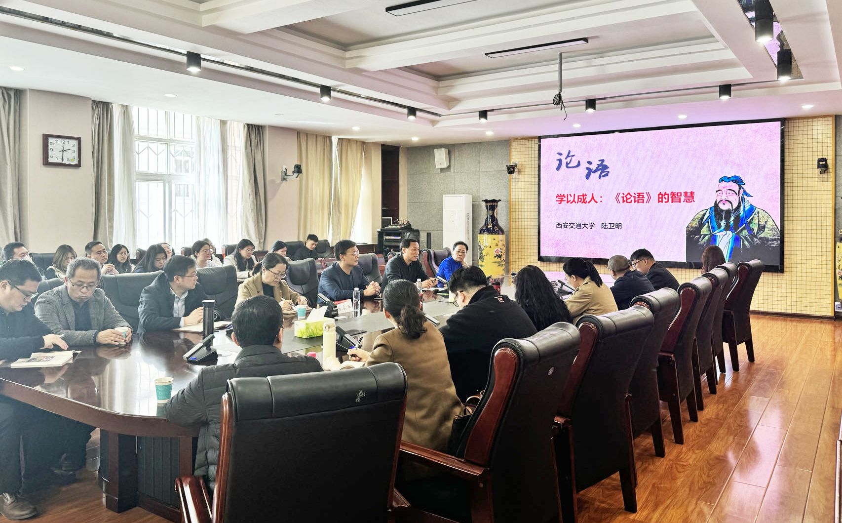3月19日下午,澳门十大信誉好的网站、陕西省思政课名师工作室(澳门十大信誉好的网站)在金花校区第三会议室举办专题报告会,特邀西安交通大学澳门十大信誉好的网站、全国高校思政课名师工作室(西安交通大学)负责人、国家重大课题“中华优秀传统文化与科学社会主义核心价值观主张高度契合性研究”首席专家陆卫明教授作了题为“学以成人:《论语》的智慧”专题报告,会议由院长王志刚主持。