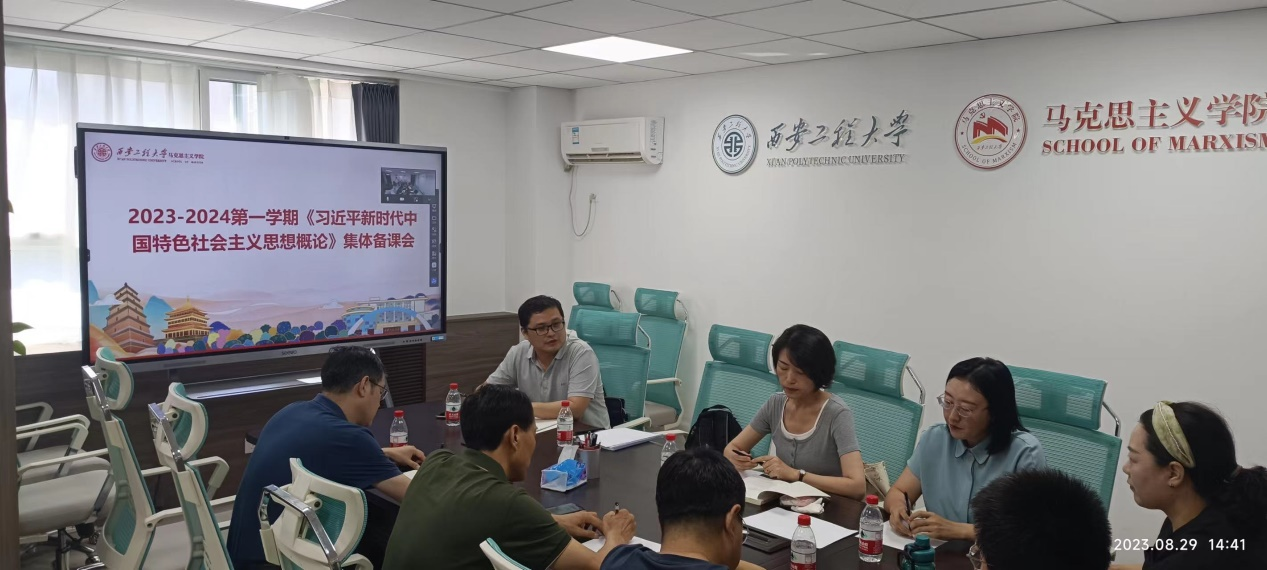 2023年8月29日下午,开学第一周十大信誉官网中国特色社会主义理论教研室召开了本学期第一次“习近平新时代中国特色社会主义思想概论”课程集体备课会,学院院长王志刚、副院长郭松、屈旻和教研室任课教师参加了备课会。