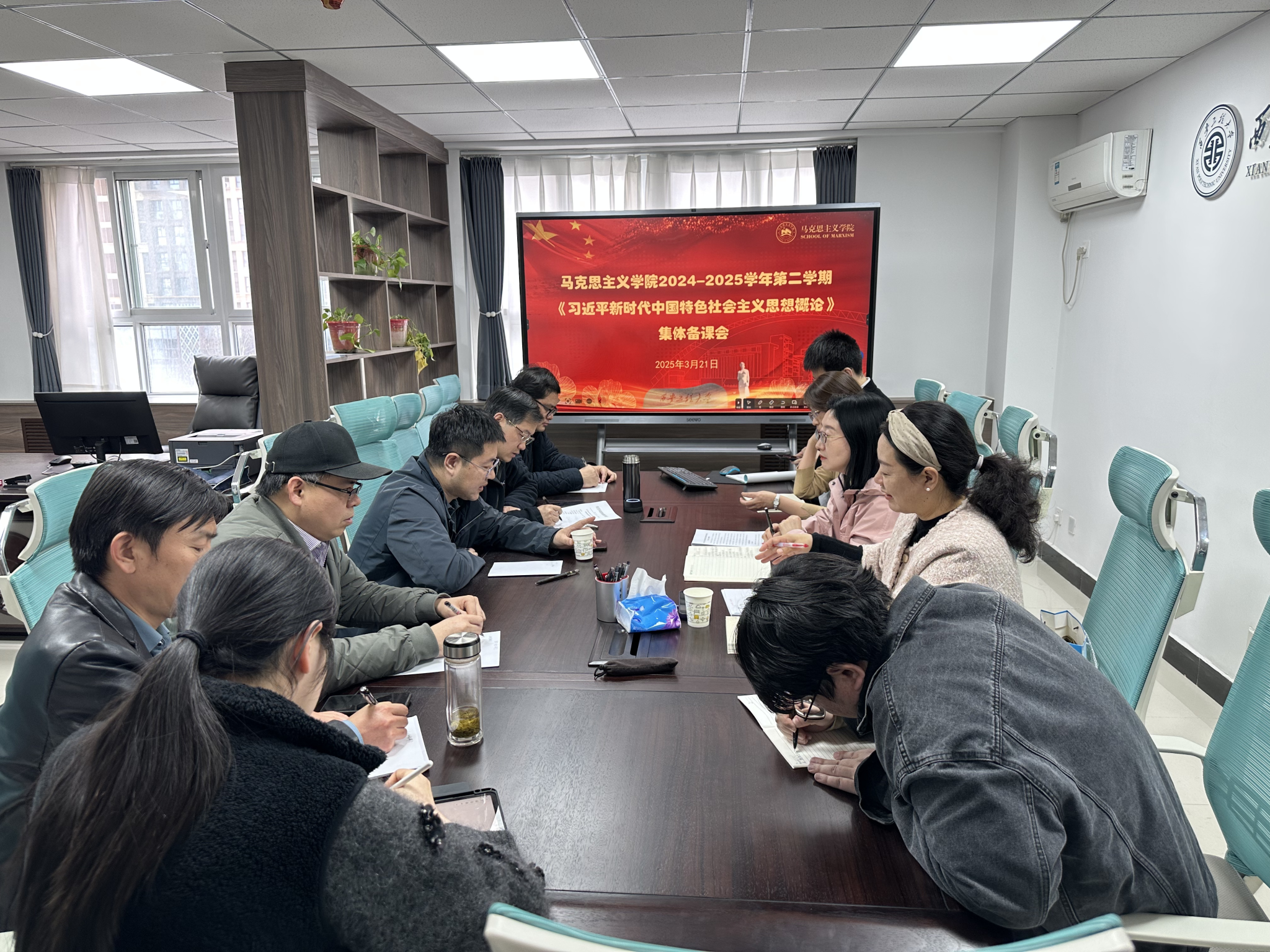 2025年3月21日下午,澳门十大信誉好的网站习近平新时代中国特色社会主义思想概论教研室围绕持续推进高质量教学,召开本学期第二次教学法活动与集体备课会。会议由教研室主任刘敏主持,副院长(主持工作)郭松、教学副院长屈旻及全体任课教师参加。