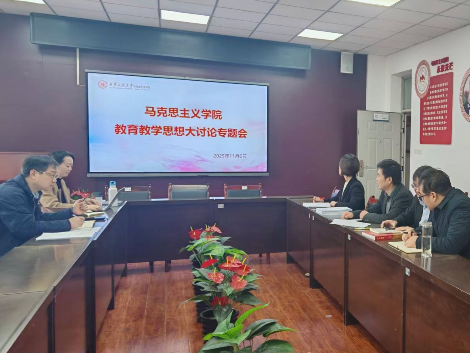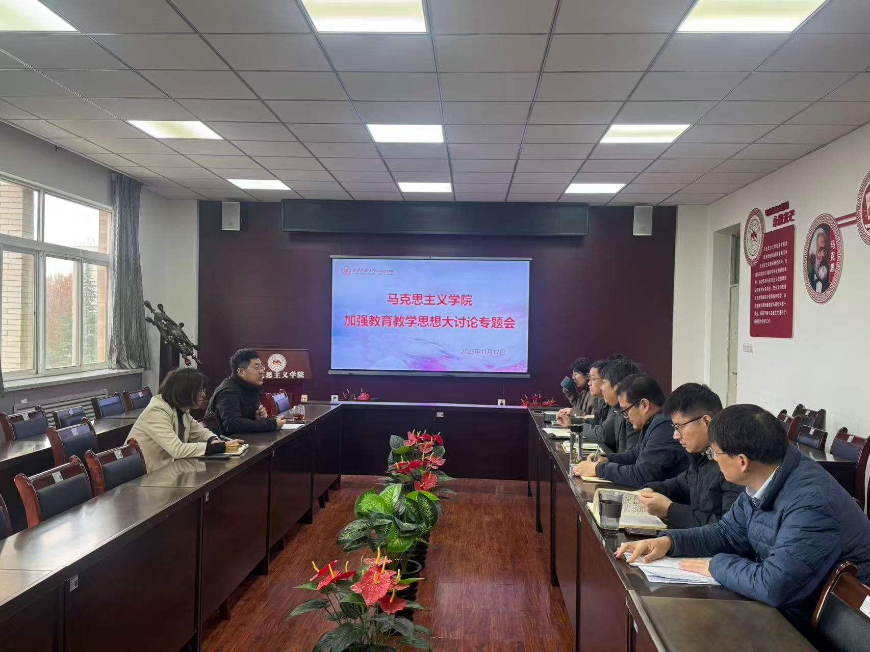 本次活动围绕深化教育改革,夯实质量文化,助力强国建设主题,聚焦铸魂育人,优化人才培养体系;融合发展,推进学科专业升级;德能并举,促进师资队伍提升;质量提升,打造特色质量文化四个专题展开讨论。主旨是将思政课教育教学与学校发展目标、学院建设任务紧密结合。一是持续创新教学方法。将党的二十届四中全会精神以及梦桃精神、姚穆院士先进事迹融入思政课堂,领悟党的最新理论成果,弘扬教育家科学家精神。二是扎实推进目标任务。将思政课教育教学与学校审核评估目标任务相结合,与学校各学院开展课程思政结对育人活动。